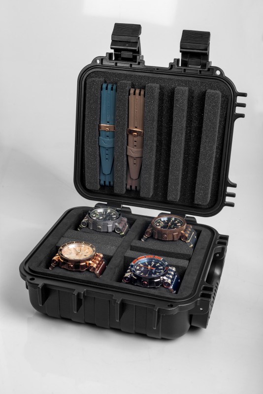 - balenie: vodotesný box XL 10 ATM s náhradným silikónovým remienkom, šraubovákom, záručnou knižkou s pečiatkou oficiálneho dovozcu pre Slovensko a dokladom o skúške vodotesnosti od výrobcu. Box môže slúžiť ako úložný priestor pre 4 ks hodiniek a náhradné remienky.