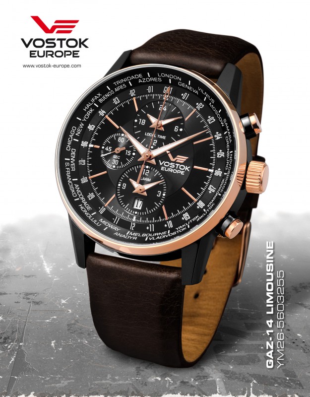 - pánske hodinky Vostok - Europe GAZ-14 world timer/alarm line YM26/5603255
